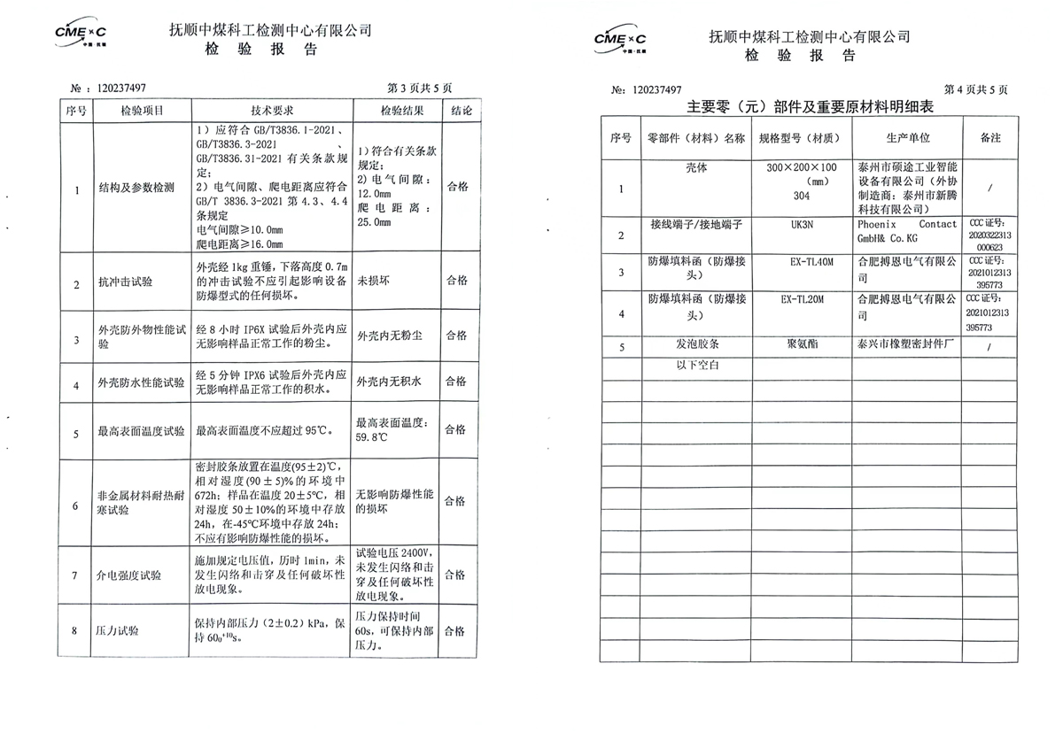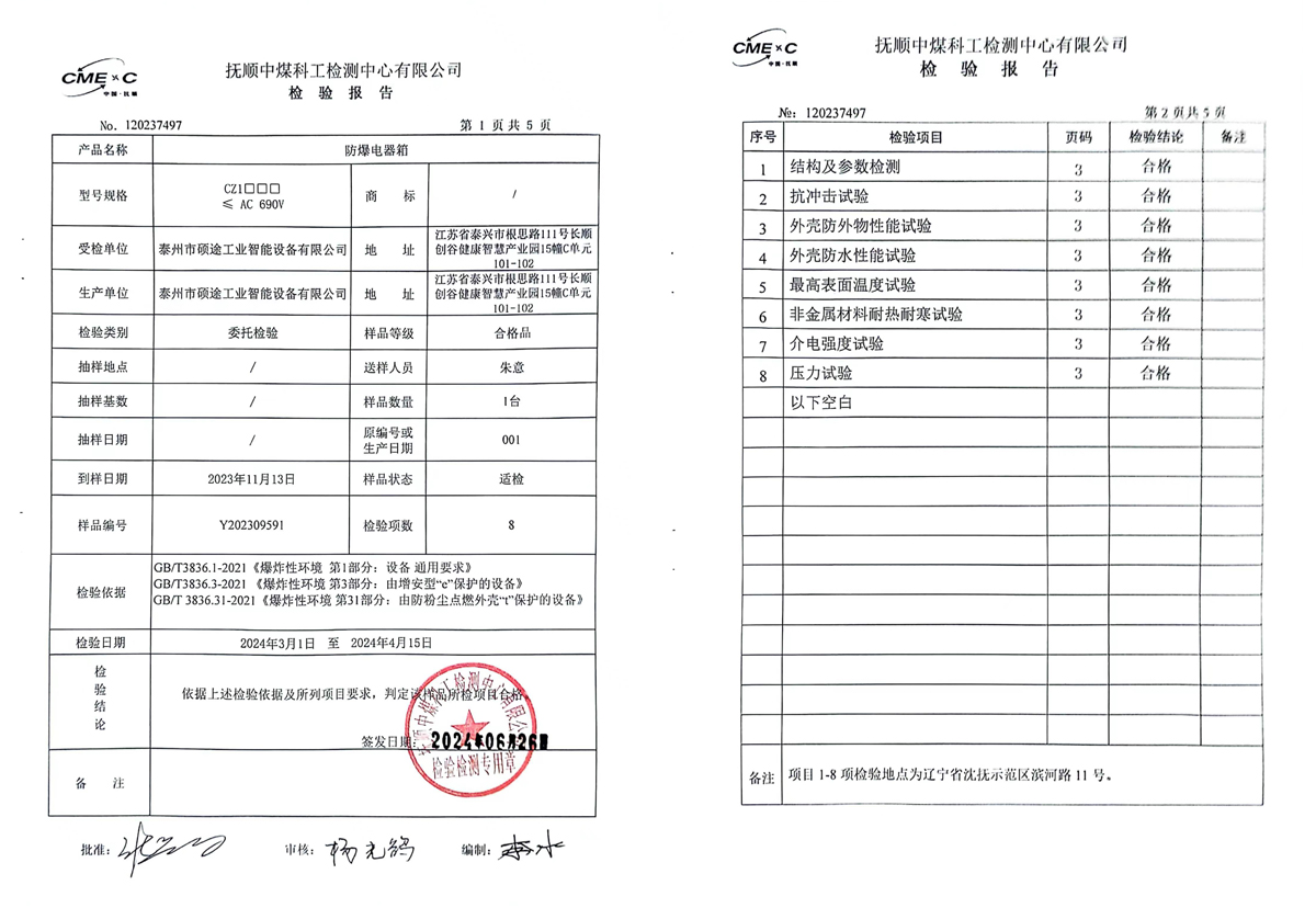 检验报告(防爆电器箱)