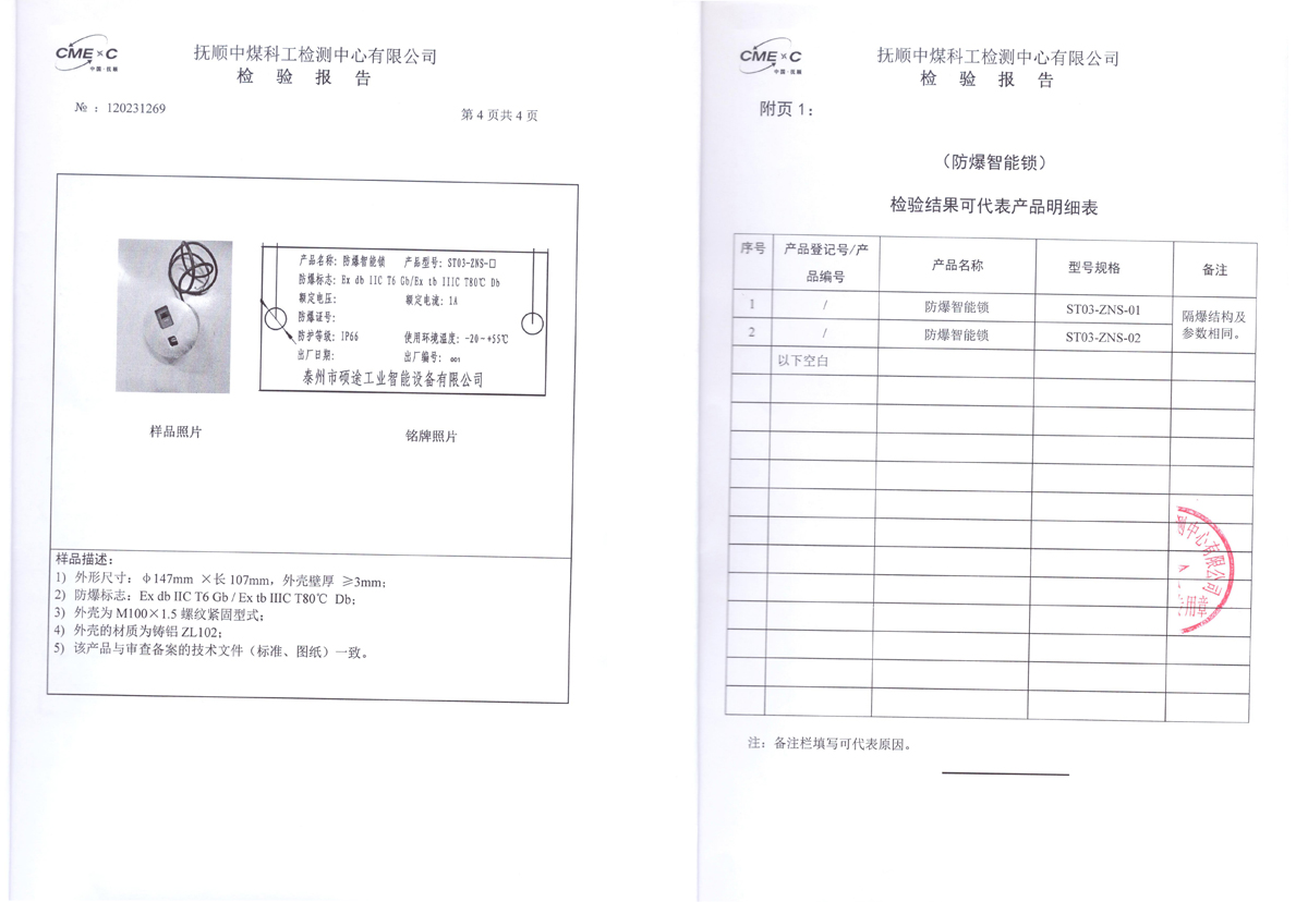 检验报告(防爆智能锁)